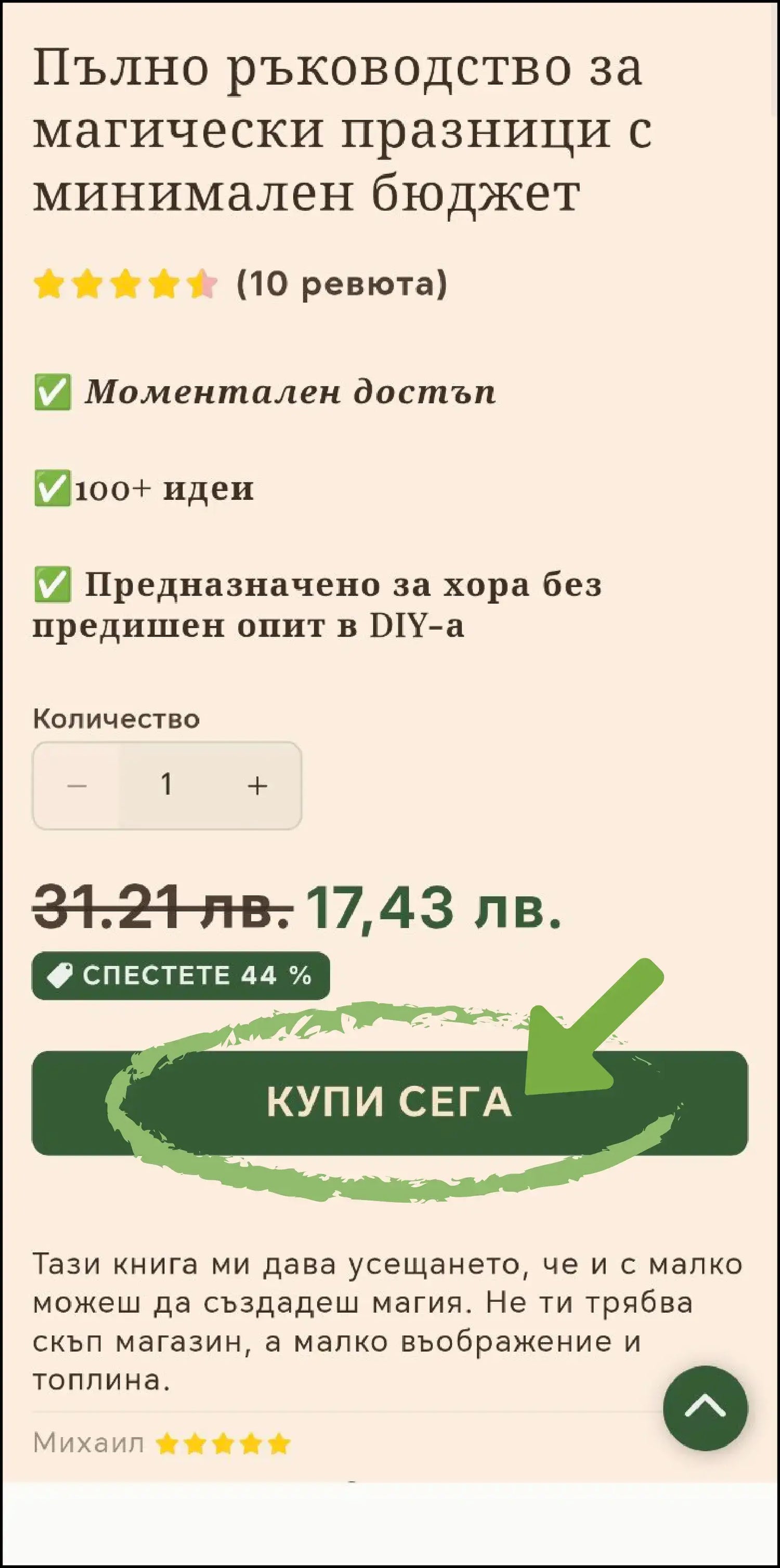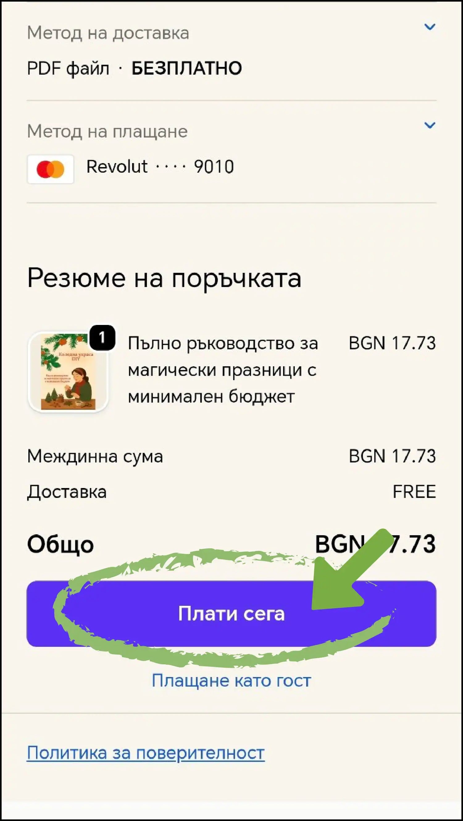След успешна покупка получавате автоматично линк за изтегляне директно на телефона или компютъра си. Линкът остава активен и в имейла ви, за да можете да го свалите по всяко време.
